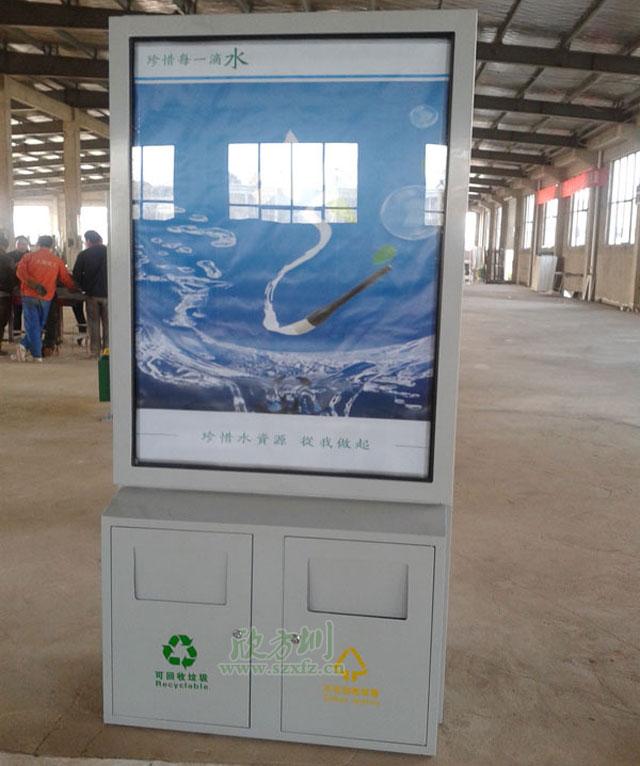 ? 公益廣告垃圾桶生產(chǎn)制作常用的材質(zhì)有冷軋鋼、不銹鋼、玻璃鋼;產(chǎn)品造型經(jīng)典時尚,整體結(jié)構(gòu)牢靠,箱體箱底連體式設(shè)計,底座可固定地上,抗打擊,抗風(fēng)力。控制箱體高度,廣告桶高度設(shè)計在1.8米左右,符合城市規(guī)劃要求。獨特的抽屜式斜插內(nèi)桶減輕環(huán)衛(wèi)工人清理勞動強度,投口與清理口一體設(shè)計,便于垃圾入箱及清理。廣告垃圾箱具有投入成本低,直接受眾效果好。