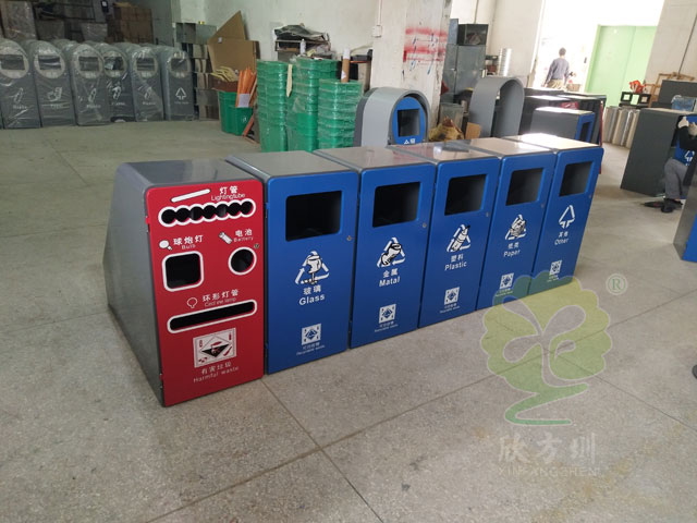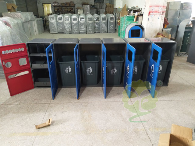 上個月深圳市觀瀾街道就向我公司訂購了一批這種市政環衛分類垃圾桶,用于推進垃圾分類與減量工作。垃圾桶外結構表面是用冷軋鋼板制作,內桶使用玻璃鋼材質,采用連體式組合。相對于普通玻金塑紙分類垃圾桶,它有多了一個其他類分類,更多滿足我們生活中的需求。因為玻金塑紙四種垃圾只占我們生活垃圾的17%左右,人們生活中還會產生大量的不可回收垃圾,這些垃圾我們也不能置之不理,有了一個其他垃圾,就能更好的回收其他種類的垃圾了。