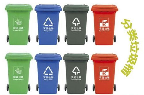 一般來說,綠色類的是標識可回收,灰色或者紅色等表示不可回收。