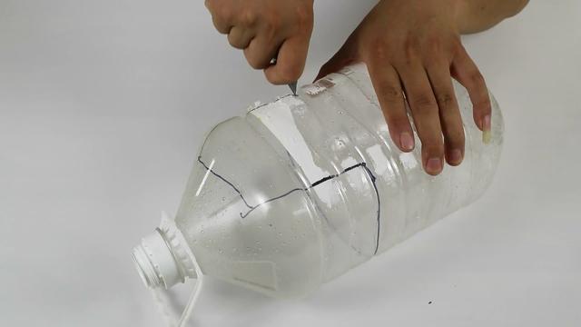 ? ? 那么今天分類垃圾桶網(wǎng)就用一個垃圾桶小發(fā)明,輕松解決你廚房里所有的難題,首先今天用到的道具非常簡單,只需要我們吃油剩下的油桶就可以,我們在油桶上先標記一下