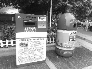 ? ? 而它隔壁的“兄弟”——超大的藍色飲料瓶,更是提醒大家,這是專門投放飲料瓶的回收箱。上面有個圓形的投放口,同時標注了投放可樂瓶、果汁類瓶、礦泉水瓶、純凈水瓶等。