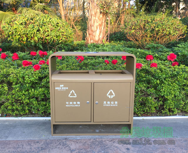 鋼制噴塑分類垃圾桶:使用優質鋼木剪裁、沖孔、折彎、組裝、焊接、打磨、噴塑、絲印而成,外表美觀,功能實用,適用于街道、學校、景區、廣場、小區等各種戶外場所。
