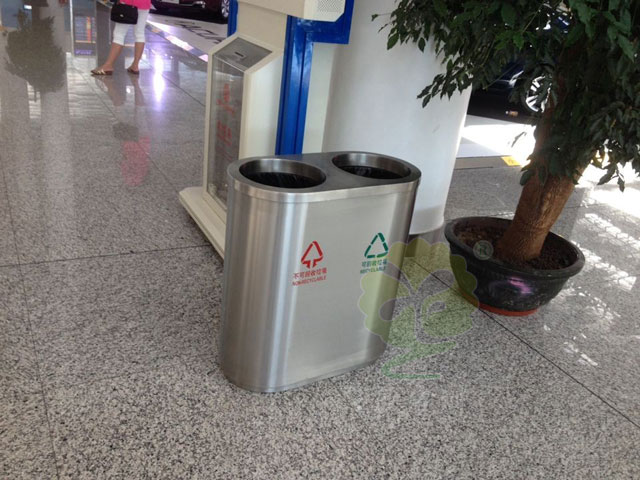 室內不銹鋼二分類垃圾桶:鍍鋅內桶,不銹鋼外殼,做了去角化處理,更安全。適用于地鐵、高鐵、機場、商場等人流量巨大的室內場所,生產周期10-15天。