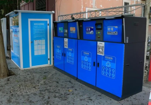 啟動(dòng)儀式當(dāng)天,小區(qū)內(nèi)分類垃圾桶已經(jīng)擺放好,分別設(shè)置了可回收物、有害垃圾、廚余垃圾、其他垃圾四類標(biāo)志。此次試點(diǎn)工作,共在花園小區(qū)投放垃圾分類桶64個(gè)和3組智能垃圾柜。居民通過手機(jī)應(yīng)用軟件掃碼,分類投放垃圾,可獲得相應(yīng)積分,兌換等價(jià)商品。