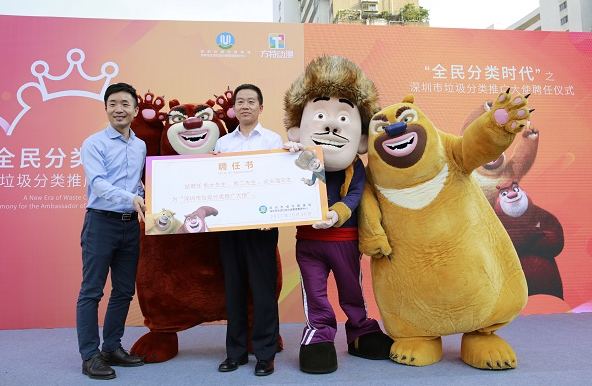? 作為全國首個聘任卡通形象為垃圾分類推廣大使的城市,今后,“熊出沒”中家喻戶曉的卡通形象,將加入到深圳市生活垃圾分類宣傳的“豪華套餐”中,熊大、熊二、光頭強等推廣大使將深入到低年齡段少年兒童中,積極推廣與弘揚垃圾分類知識和環保理念。