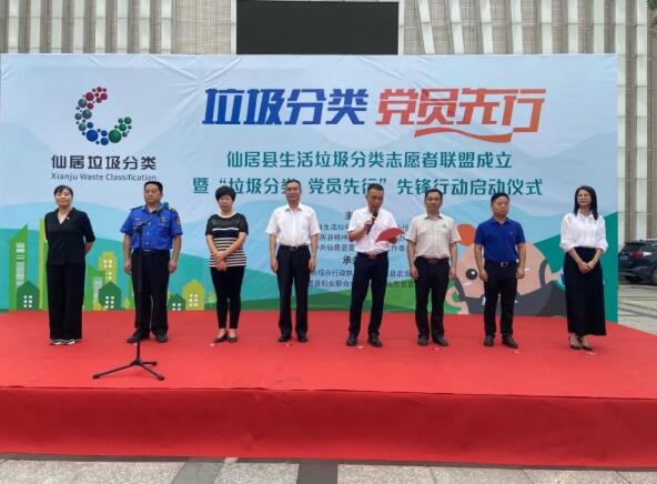 8月11日上午,仙居縣分類辦積極響應市分類辦號召,在仙居劇院廣場舉行生活垃圾分類志愿者聯盟成立暨“垃圾分類 黨員先行”先鋒啟動儀式。