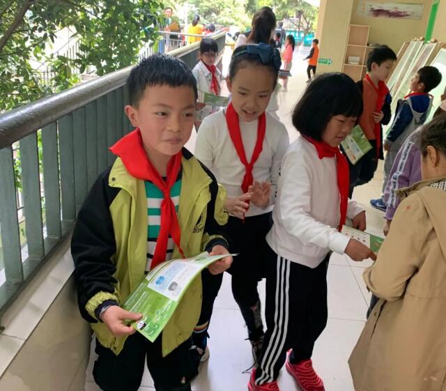 2.4班的同學們積極參加到宣傳中來,號召其他班級的同學們都來學習垃圾分類。