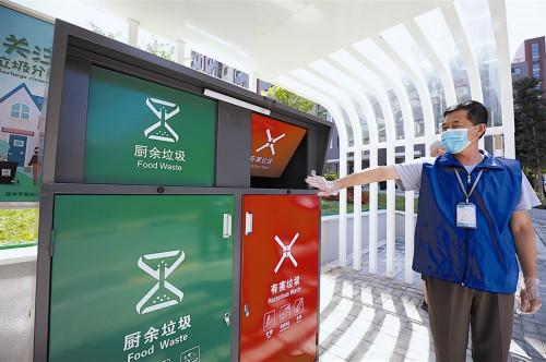 西崗區億達天琴山小區共有居民樓5棟,常駐居民622戶,每棟樓前設置1處投放點,包括廚余垃圾投放箱、其他垃圾投放箱和可回收物投放箱,正門大堂設立延時投放點1處,并設有害垃圾投放箱,小區物業參與垃圾分類工作員工10人,該小區的垃圾分類設施全覆蓋,源頭分類初見成效。