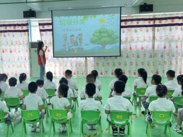 為進一步提升居民垃圾分類意識,讓居民了解正確的垃圾分類知識,踐行綠色、低碳、環保的生活理念,帶動社區美好環境與幸福生活共同締造。6月25日,安巢經開區半湯街道岠嶂社區婦聯組織巾幗隊伍進入寶寶樹幼兒園開展“垃圾分類投,童心護地球”志愿服務宣傳活動,讓大手牽起小手,從娃娃抓起,將垃圾分類的知識和行動帶到每個家庭。  活動現場,巾幗志愿者從垃圾處理的現狀、垃圾的分類、如何做好垃圾分類三個方面展開講解,呼吁小朋友從身邊小事做起,節約每一張紙,節約每一支筆,減少垃圾產生。同時進行垃圾分類環保歌教學,鼓勵大家積極參與垃圾分類,垃圾分一分,環境美十分,共創優美社區環境。講解結束后,志愿者向小朋友發放彩色蠟筆,讓小朋友繪制心中的綠色美好家園。