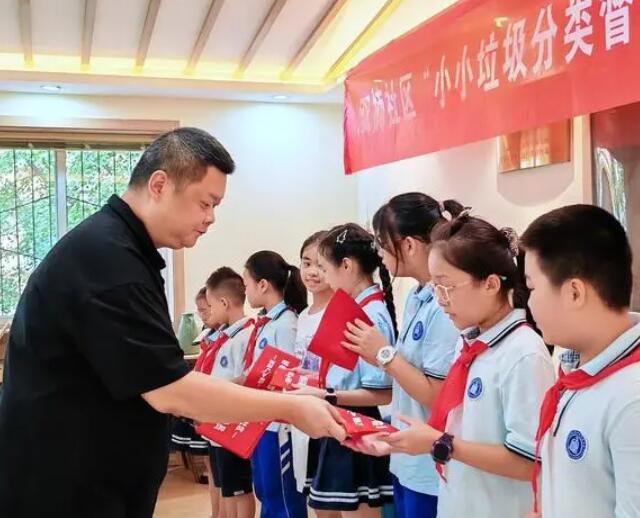 最后,活動評選出8名“小小督導員”,雙楠社區黨委書記楊遠志為每位榮獲垃圾分類“小小督導員”稱號的小朋友頒發袖章,鼓勵他們爭做垃圾分類的宣傳者、實踐者和守衛者。“我們通過活動提高青少年認識垃圾分類的重要性和參與自覺性,增強他們的生態保護意識與綠色生活理念;通過青少年帶動家庭,引導居民參與到垃圾分類的行動中來,共同創建干凈整潔美好的社區環境。”楊遠志說。
