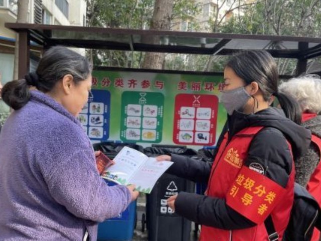 志愿者站在桶邊對前來投放垃圾的居民講解垃圾分類知識,指導(dǎo)居民規(guī)范分類、正確投放,對沒有按要求分類的居民耐心指導(dǎo),詳細解答居民日常分類中遇到的問題,同時還倡導(dǎo)居民在日常生活中要養(yǎng)成垃圾分類的好習(xí)慣,鼓勵居民堅持做好垃圾分類,帶動身邊更多的居民參與進來。