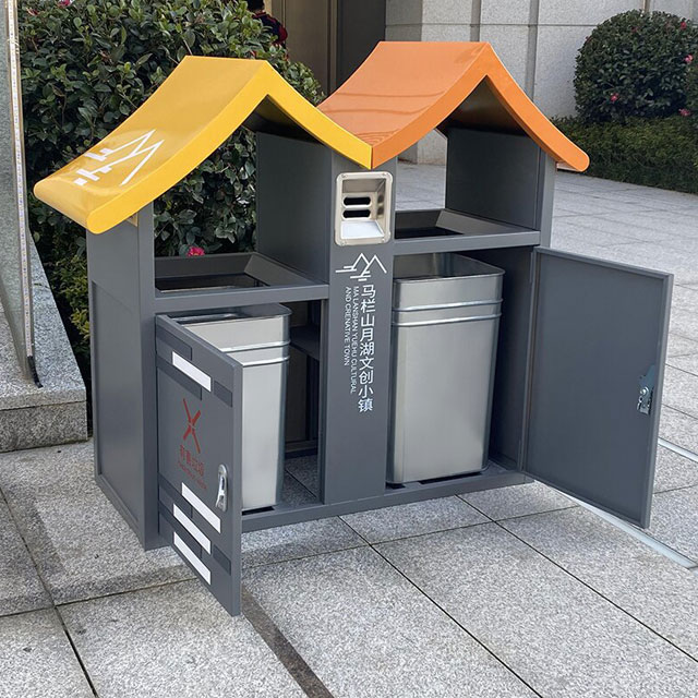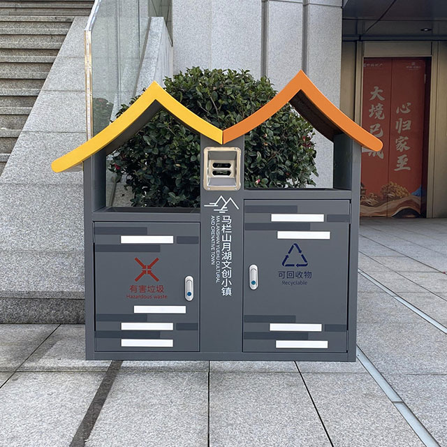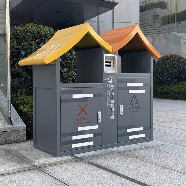 其廣泛的適用性使其成為各類戶外場所的理想選擇。在公園中,它可以放置在各個景點和休息區(qū)域,引導游客進行垃圾分類,保護公園的自然環(huán)境;在住宅小區(qū),它能擺放在每棟樓的入口處,方便居民分類投放垃圾,提升小區(qū)的整體環(huán)境品質(zhì);在學校校園內(nèi),能培養(yǎng)學生的環(huán)保意識,讓垃圾分類從小抓起。總之,這款戶外屋形鍍鋅板分類垃圾桶,憑借其獨特的設(shè)計和實用的功能,能夠在各種戶外場景中發(fā)揮重要作用,助力環(huán)保行動的深入開展。