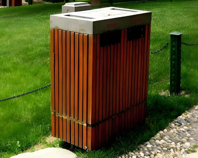 鋼木結構的創新組合打破了傳統垃圾箱的單一材質局限。冷軋鋼板經過粉末噴涂工藝處理后,呈現出細膩的啞光質感,與經過防腐處理的芬蘭松木形成冷暖對比。金屬部件采用模塊化設計,通過精密數控機床切割成型,誤差控制在0.1毫米以內,確保與木質構件的無縫銜接。這種工藝既保留了木材的天然紋理,又賦予產品工業制造的精確美感。
