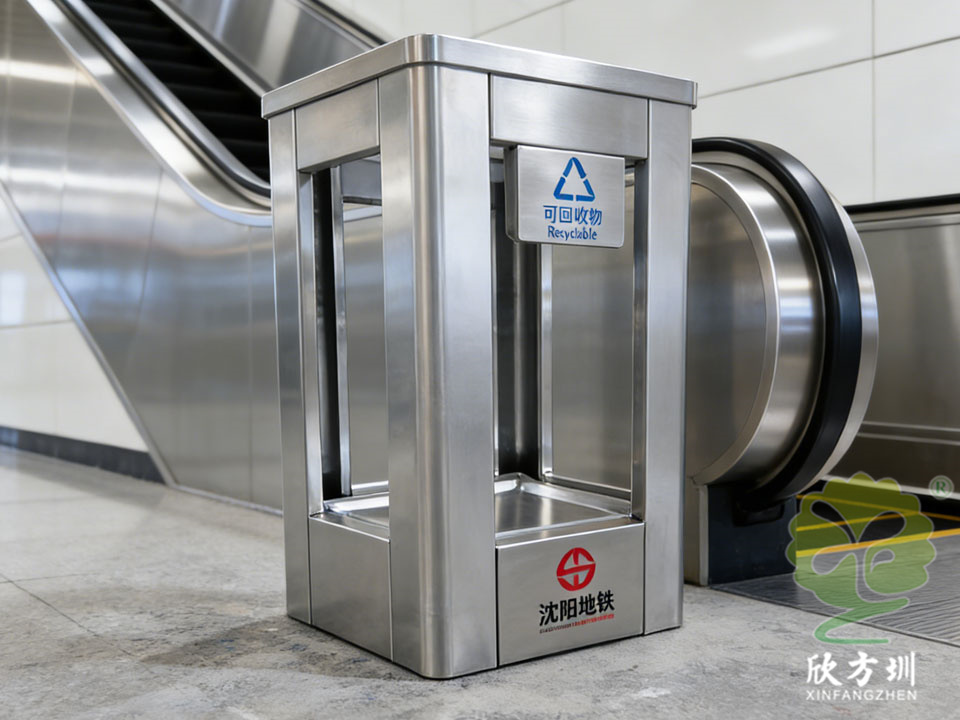 它們靜立在站臺兩端,通體由不銹鋼鑄成,線條利落如沈陽冬日結(jié)霜的枝椏。最引人注目的,是桶身鑲嵌的大幅透明視窗。其后,藍(lán)、綠、灰、紅四色內(nèi)膽清晰可見,標(biāo)識著可回收物、廚余垃圾、其他垃圾與有害垃圾的清晰歸途。金屬的冷冽質(zhì)感與視窗的透明柔和,奇妙地融為一體,仿佛工業(yè)的嚴(yán)謹(jǐn)與文明的通透在此握手言和。