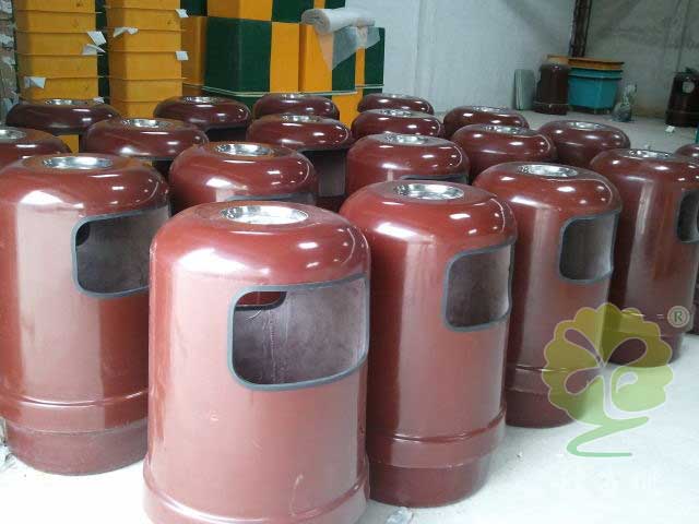 2、該玻璃鋼垃圾桶桶身上烤漆上色,簡潔美觀,自然大方,為環(huán)保戶外垃圾桶.