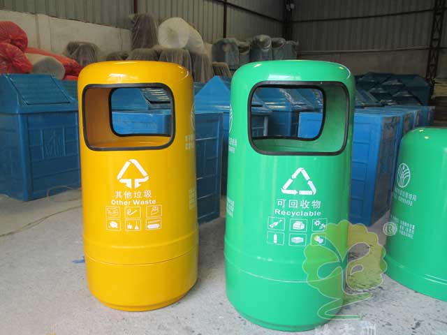 2、該玻璃鋼垃圾桶桶身上烤漆上色,簡潔美觀,自然大方,為環保戶外垃圾桶.