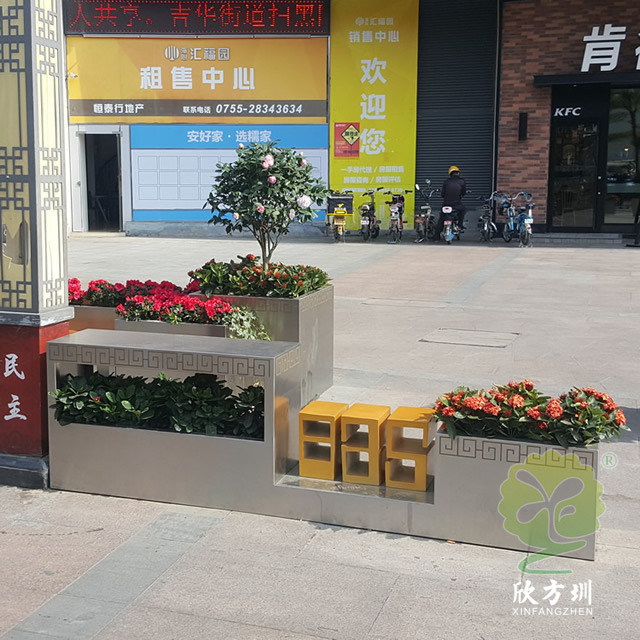 二、市政街道大型創意不銹鋼花箱的擺放位置