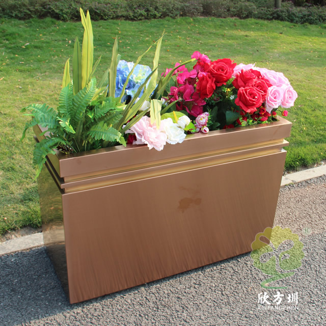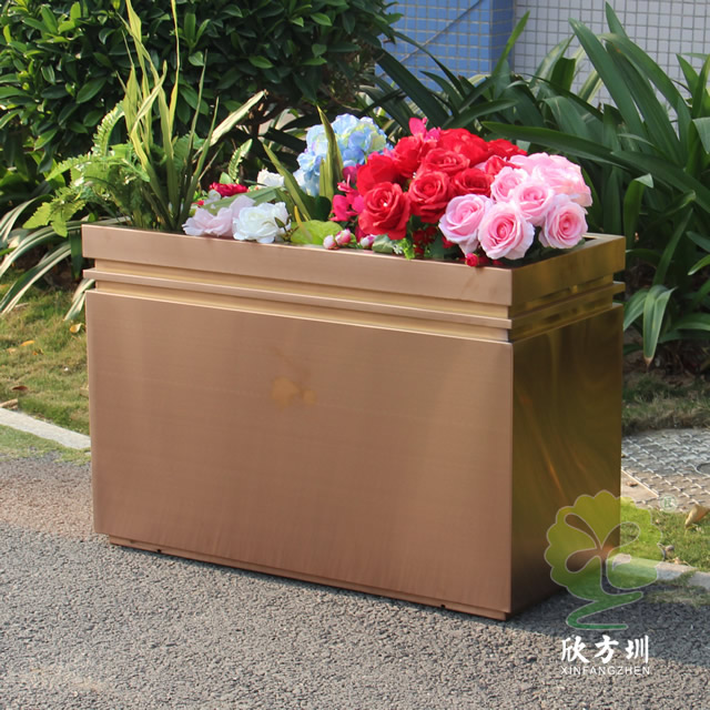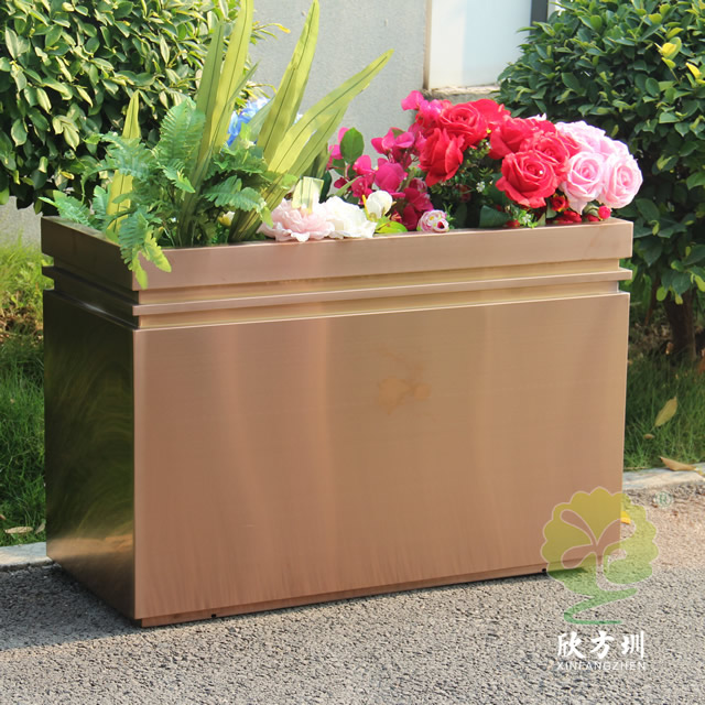 二、戶外拉絲玫瑰金不銹鋼方形花盆的擺放位置