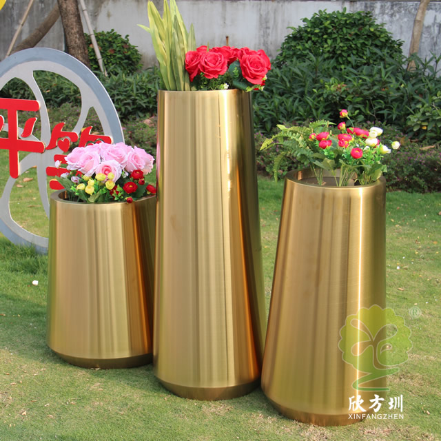 室內商場拉絲鈦金不銹鋼花盆組合