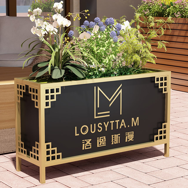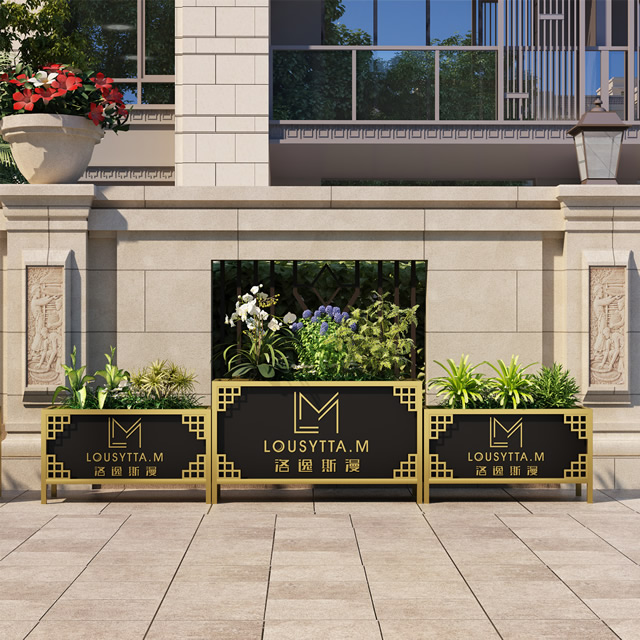 二、戶外電鍍鈦金長(zhǎng)方形不銹鋼花箱的擺放位置