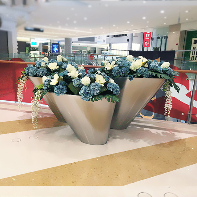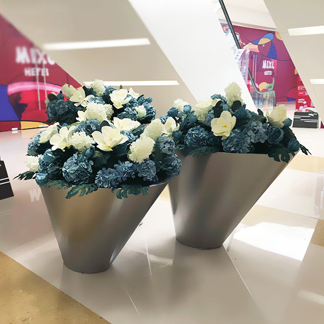 二、室內商場斜口不銹鋼花盆組合的擺放位置
