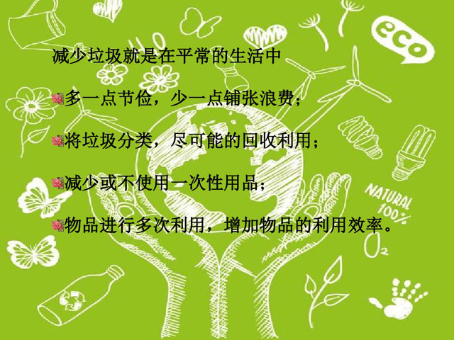 ??? 中國是人口大國,也是垃圾生產大國,可是我國的垃圾回收處理工作卻在國際上非常落后,最重要的原因就是垃圾分類這一步驟出了問題。垃圾分類宣傳任重道遠,不可不重視 ,尤其是學校里面的素質教育。一個擁有垃圾分類意識與能力的學生走上社會后,才能成為垃圾環保事業的一份子。以下是初一垃圾分類ppt,希望能幫助學校的初一學生樹立正確垃圾分類觀念。