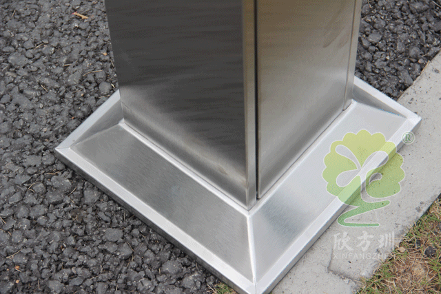 C619煙灰柱采購規格260*260*1120mm,呈長條傳,側面有三角鑰匙,可以打開側門,方便清理位于內套管的煙蒂煙灰,底座分兩種,一種是室內采用的,在底部裝有防滑墊,一種是戶外采用的,底部使用膨脹螺絲固定。