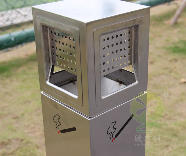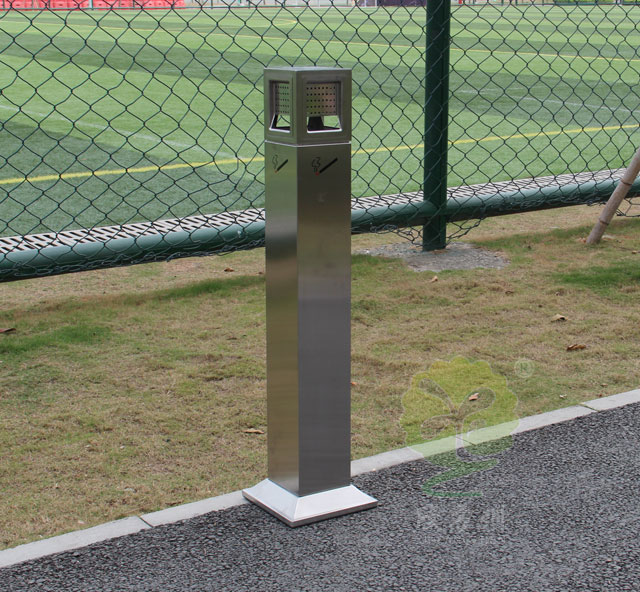 C280方形不銹鋼滅煙柱采用優(yōu)質(zhì)不銹鋼剪切、組裝、焊接、絲印而成,它包括外套管、支座、內(nèi)套管、煙灰盒、底座。外套管的底端固定連接在支座上,外套管的側(cè)壁上設(shè)有煙蒂置入口,內(nèi)套管用于集中收納從外套管的煙蒂置入口投入的煙蒂,內(nèi)套管設(shè)在外套管的內(nèi)管腔中,內(nèi)內(nèi)套管的開口端朝上,煙蒂置入口與內(nèi)套管的開口相連通,以使得從煙蒂置入口投入的煙蒂可從內(nèi)套管的開口端落入到內(nèi)套管的內(nèi)管腔中;