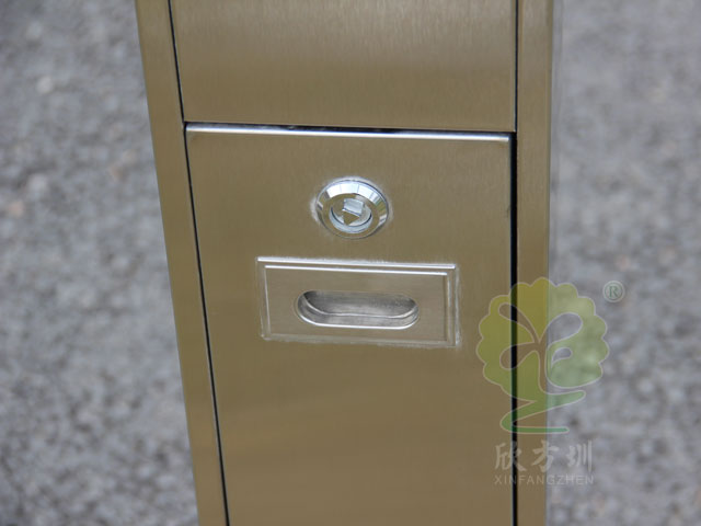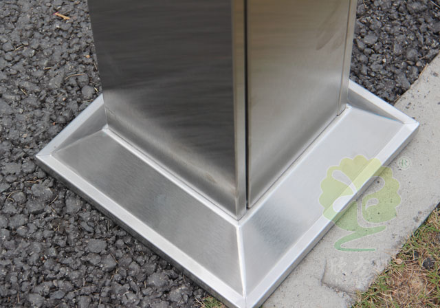C280方形不銹鋼滅煙柱規(guī)格250*250*1080mm,呈長(zhǎng)條方型,側(cè)面有三角鑰匙,可以打開側(cè)門,方便清理位于內(nèi)套管的煙蒂煙灰,底座分兩種,一種是室內(nèi)采用的,在底部裝有防滑墊,一種是戶外采用的,底部使用膨脹螺絲固定。