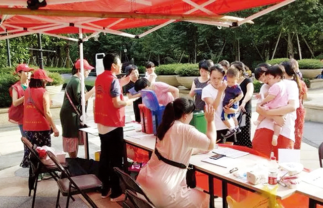 在瀆浦社區、天和小區,志愿者們設攤搭臺,通過發放宣傳單、現場講解四色分類垃圾桶作用等方式,為居民講解了垃圾革命有關知識。當晚,志愿者們又前往靈江社區、浦亭社區等地,為黨員們開展垃圾革命專項知識培訓。