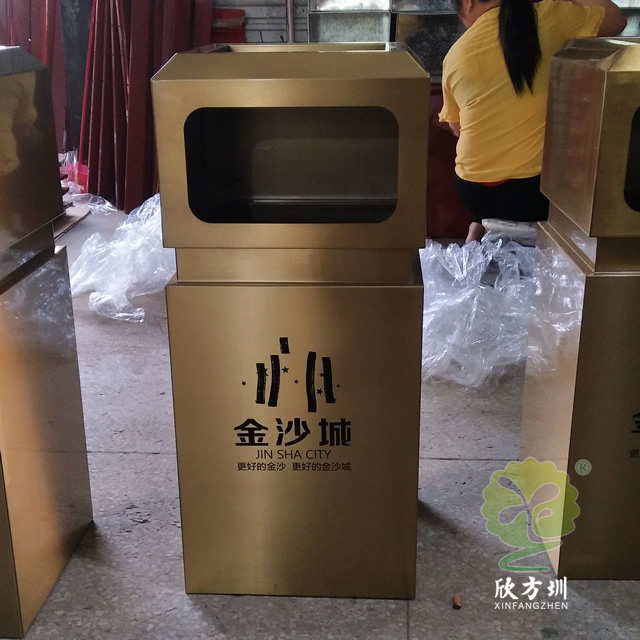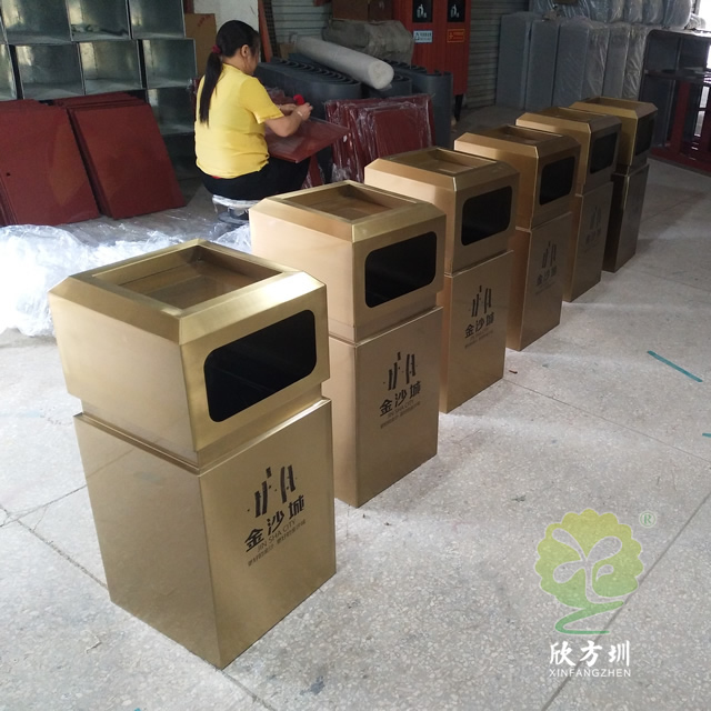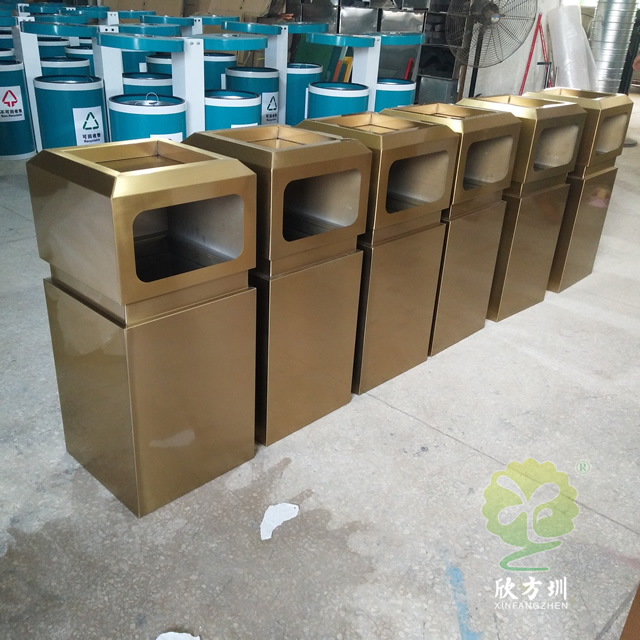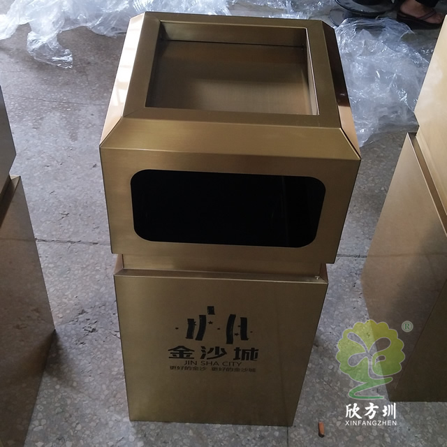 戶外電鍍古銅色方形不銹鋼垃圾桶是欣方圳設計生產的一款經典熱銷垃圾桶,這款垃圾桶雖然使用不銹鋼板制作而成,但是外形采用了電鍍古銅色設計,使其看起來有一股自然古典氣質,特別適合各種歷史景區、戶外公園、別墅小區、學校廣場等場景使用。這款垃圾桶外表經過防腐工藝處理,防水防腐蝕、經久耐用、工藝精湛、物美價廉。如果你對這款垃圾桶感興趣,請直接聯系我們報價。