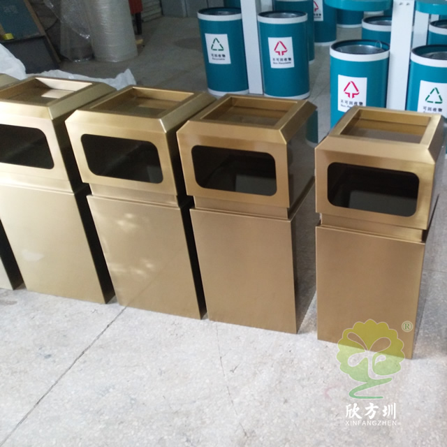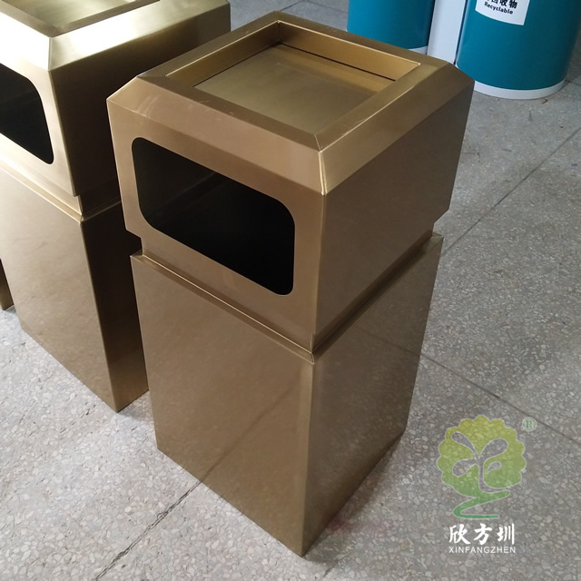 戶外電鍍古銅色方形不銹鋼垃圾桶