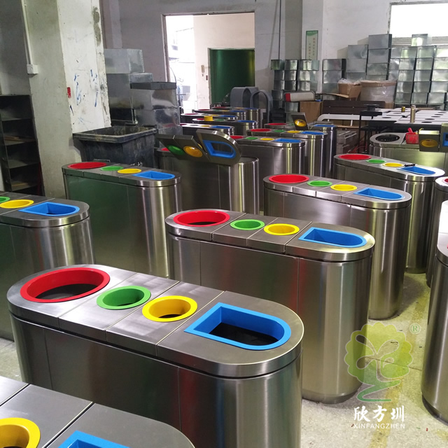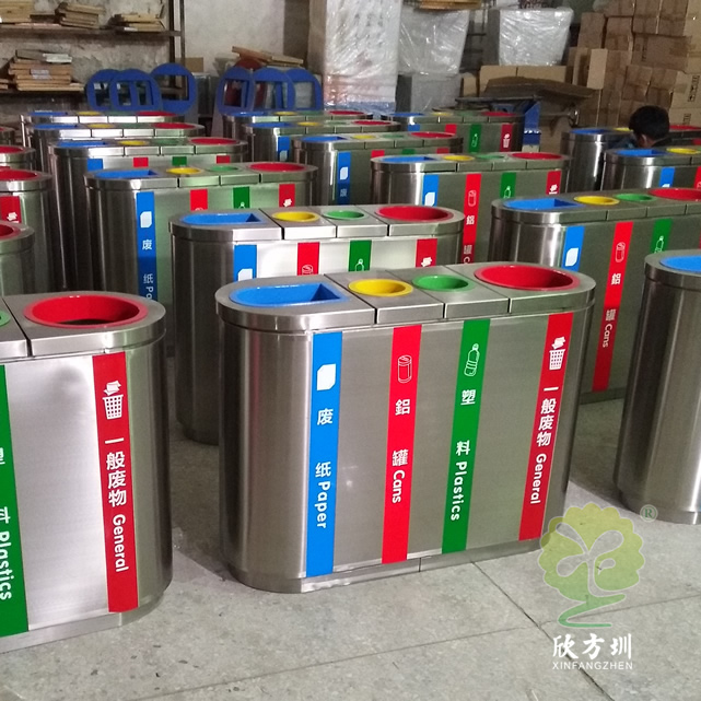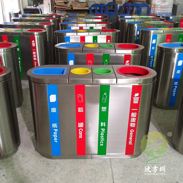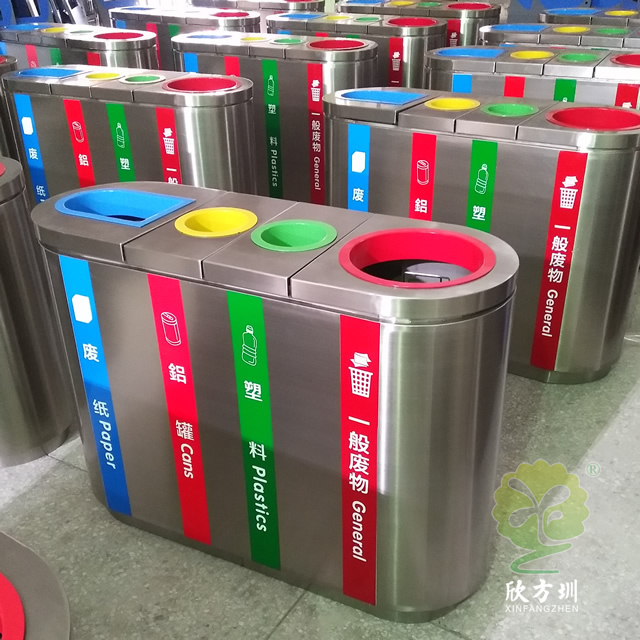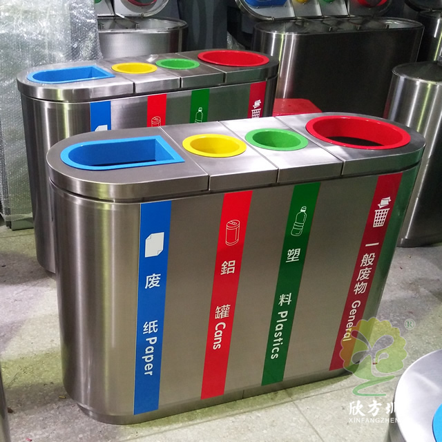 室內(nèi)立式四分類不銹鋼垃圾桶是欣方圳設(shè)計生產(chǎn)的一款經(jīng)典熱銷垃圾桶,這款垃圾桶雖然使用不銹鋼制作而成,但是外形分類標識采用了貼紙設(shè)計,使其看起來有一股自然不銹鋼本色,特別適合各種購物商城、國際機場、室內(nèi)車站、地鐵站等場景使用。這款垃圾桶外表經(jīng)過防腐工藝處理,防水防腐蝕、經(jīng)久耐用、工藝精湛、物美價廉。如果你對這款垃圾桶感興趣,請直接聯(lián)系我們報價。