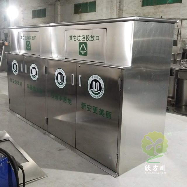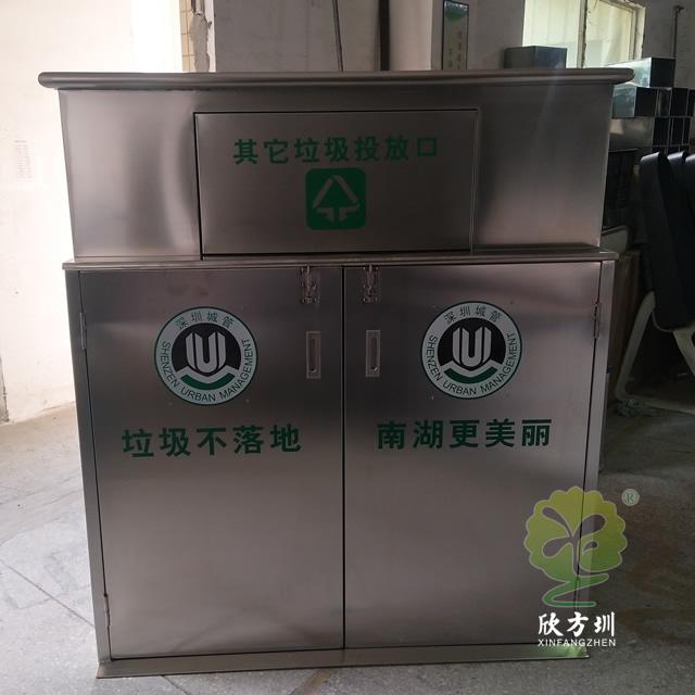 深圳城中村戶外大容量不銹鋼垃圾箱是欣方圳設(shè)計生產(chǎn)的一款經(jīng)典高檔垃圾桶,這款垃圾桶雖然使用不銹鋼制作而成,但是外形采用了不銹鋼本色方形分類處理,使其看起來有一股自然不銹鋼鋼鐵氣質(zhì),特別適合各種室外物業(yè)小區(qū)、城中村、社區(qū)等場景使用。這款不銹鋼垃圾桶外表經(jīng)過防腐工藝處理,防水防腐蝕、經(jīng)久耐用、工藝精湛、物美價廉。如果你對這款垃圾桶感興趣,請直接聯(lián)系我們報價。