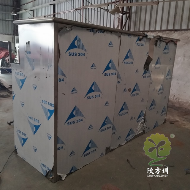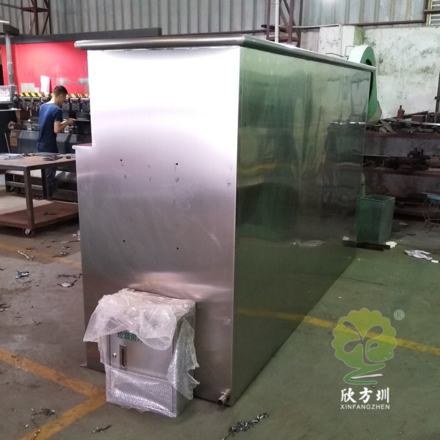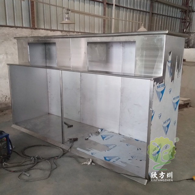 使用不銹鋼板剪切、折彎、組裝、焊接、打磨而成