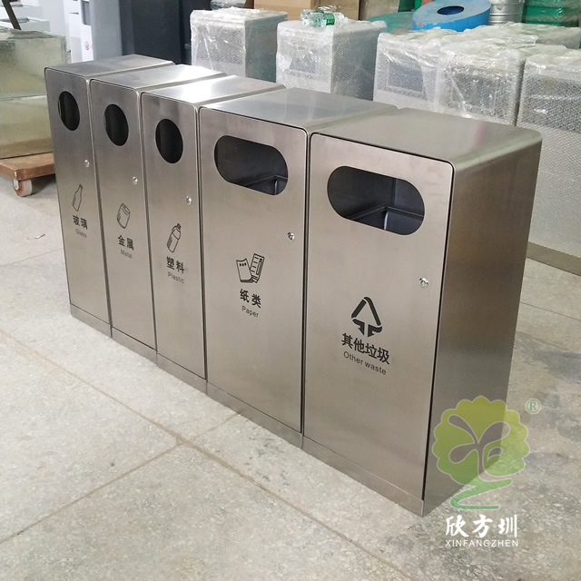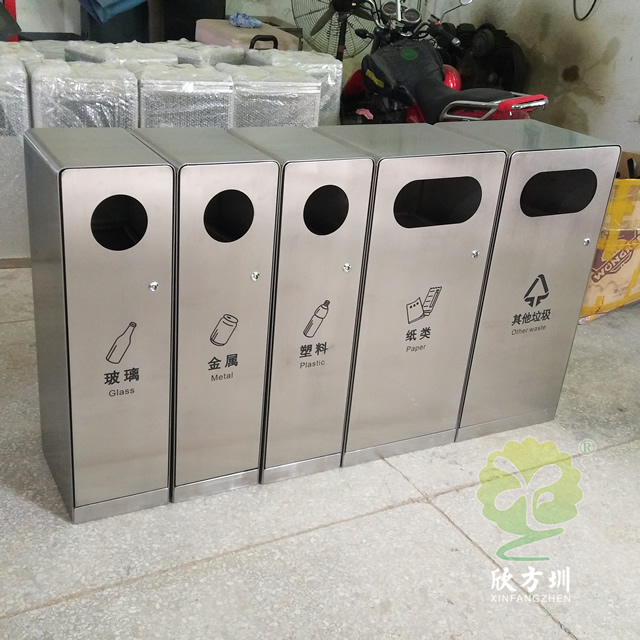 卓越品質(zhì)、精湛工藝‘、時(shí)尚外觀是XFZ-F343四加一組合式不銹鋼分類垃圾桶的優(yōu)點(diǎn),它以優(yōu)質(zhì)201#不銹鋼剪裁、組裝、焊接而成,卻渾然天成、嚴(yán)絲合縫、看不到一點(diǎn)縫隙和焊接痕跡。完美的折彎曲線非常考驗(yàn)制作工人的手藝,這種曲線不僅僅代表了美的藝術(shù),更是實(shí)際使用過(guò)程中積累的智慧與經(jīng)驗(yàn)結(jié)晶。它能很好的防止人群磕傷碰傷,保護(hù)附近人流的安全。加厚的桶身讓垃圾桶更加的堅(jiān)固耐用,看起來(lái)更高檔更有質(zhì)感,這種高檔優(yōu)質(zhì)的外形讓它非常適合擺放于辦公樓、酒店大堂、商場(chǎng)等奢華場(chǎng)所。桶底配有防滑墊,無(wú)需使用螺絲就能起著很好的固定作用,還能防止地面刮花,專門為室內(nèi)場(chǎng)所設(shè)計(jì)。