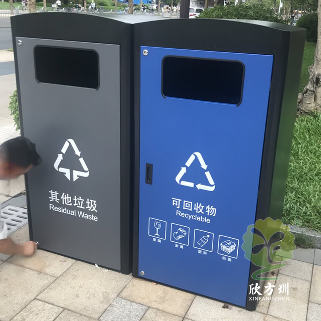 戶外灰色噴塑不銹鋼分類垃圾桶是欣方圳設計生產的一款經典熱銷垃圾桶,這款垃圾桶雖然使用201#不銹鋼制作而成,是深圳市政道路的新款垃圾桶,但是外形采用了方形分類,使其看起來有一股自然大方氣質,特別適合各種市政道路、戶外公園、別墅小區、學校廣場等場景使用。這款垃圾桶外表經過防腐工藝處理,防水防腐蝕、經久耐用、工藝精湛、物美價廉。如果你對這款垃圾桶感興趣,請直接聯系我們報價。
