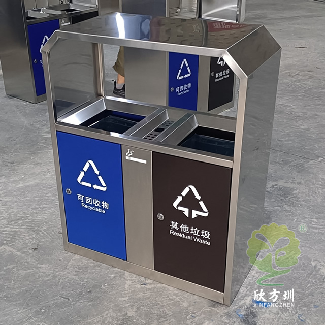 戶外街道方形不銹鋼兩分類垃圾箱是欣方圳設計生產的一款經典熱銷垃圾桶,這款垃圾桶雖然使用不喜歡制作而成,但是外形采用了方形分類,使其看起來有一股自然大方氣質,特別適合各種歷史景區、戶外公園、別墅小區、學校廣場等場景使用。這款垃圾桶外表經過防腐工藝處理,防水防腐蝕、經久耐用、工藝精湛、物美價廉。如果你對這款垃圾桶感興趣,請直接聯系我們報價。