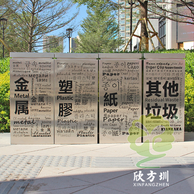 室內創意分類標識不銹鋼垃圾桶是欣方圳設計生產的一款經典熱銷垃圾桶,這款垃圾桶雖然使用不喜歡制作而成,但是外形采用了方形單筒,使其看起來有一股自然大方氣質,特別適合各種歷史景區、戶外公園、別墅小區、學校廣場等場景使用。這款垃圾桶外表經過防腐工藝處理,防水防腐蝕、經久耐用、工藝精湛、物美價廉。如果你對這款垃圾桶感興趣,請直接聯系我們報價。