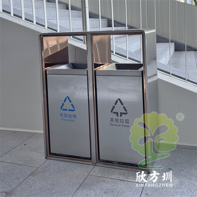 文化廣場電鍍滑軌不銹鋼分類垃圾桶