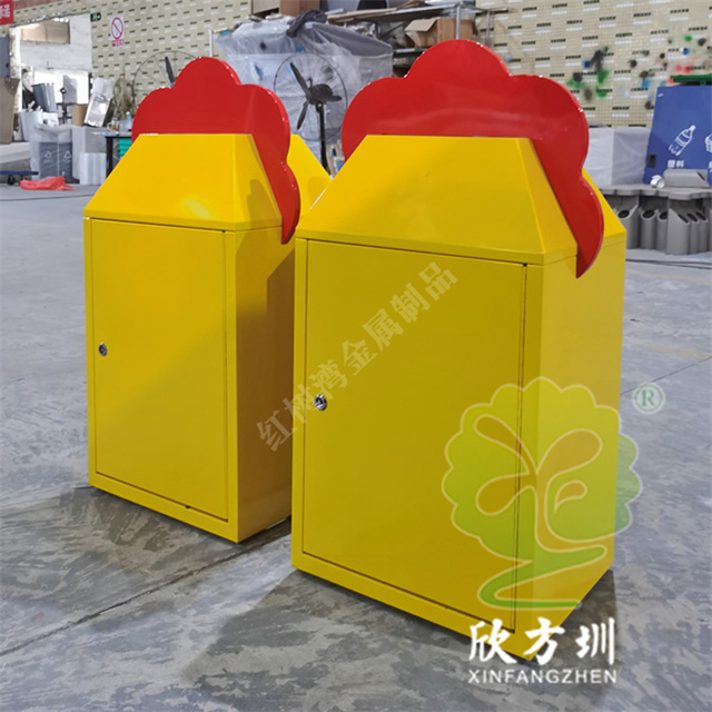 動物卡通造型彩色不銹鋼分類垃圾桶采用了1.00mm厚的304不銹鋼板制造而成,戶外方形彩色動物造型設計,每個垃圾桶擁有不同的動物造型,有猴子、獅子、熊貓等造型,桶身表面噴涂噴塑了紅色、藍色、黃色、深綠色、黑色,背面帶垃圾桶門板可以使用三角鑰匙開門取出內(nèi)筒,正面絲印了最新國標分類標識。
