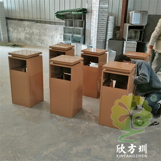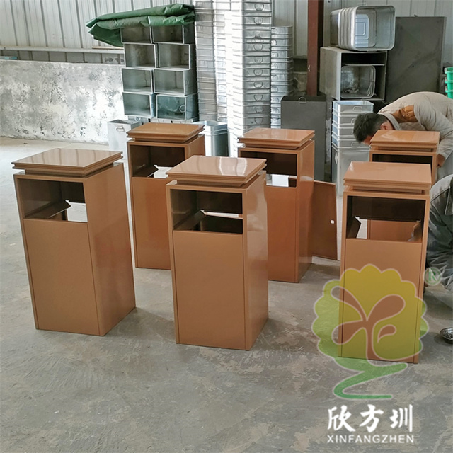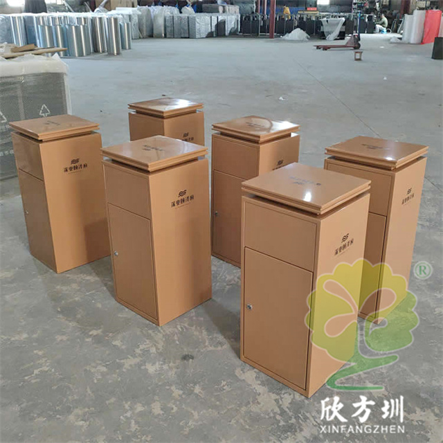 室內淺黃色電梯口方形不銹鋼垃圾桶產品詳情: |