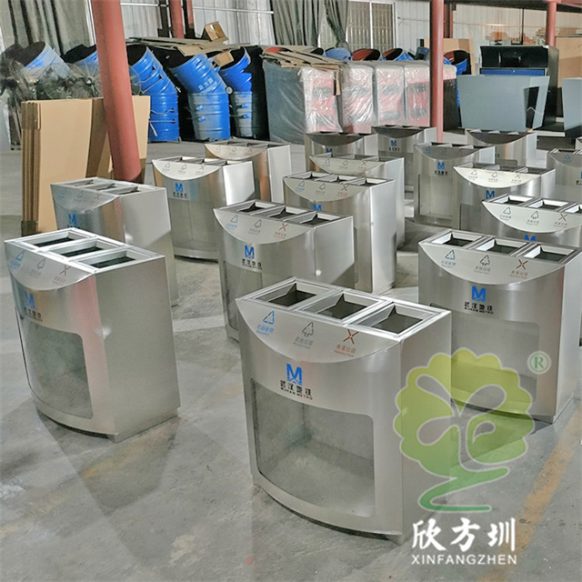 武漢地鐵站室內透明三分類不銹鋼垃圾桶