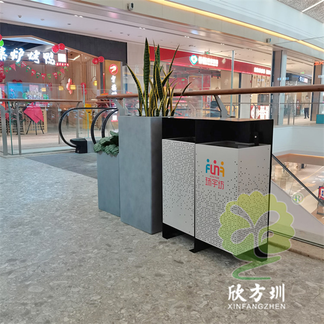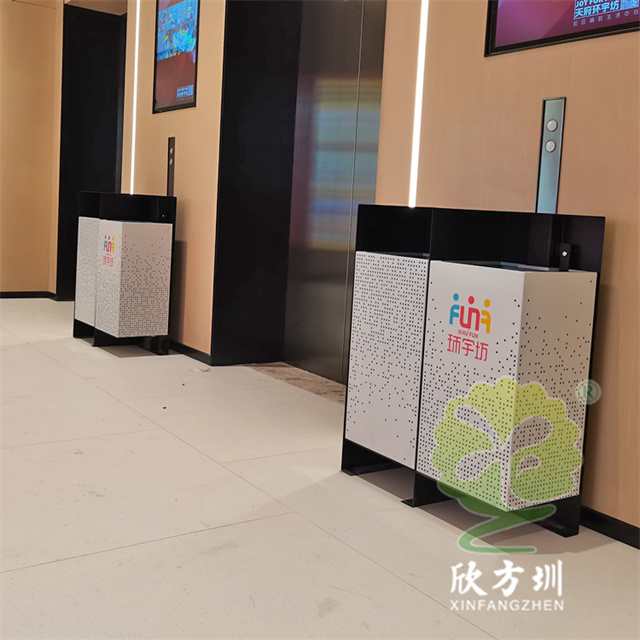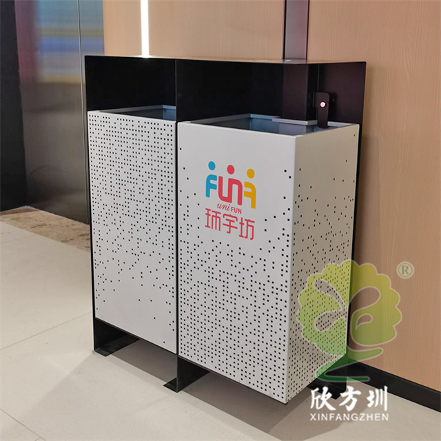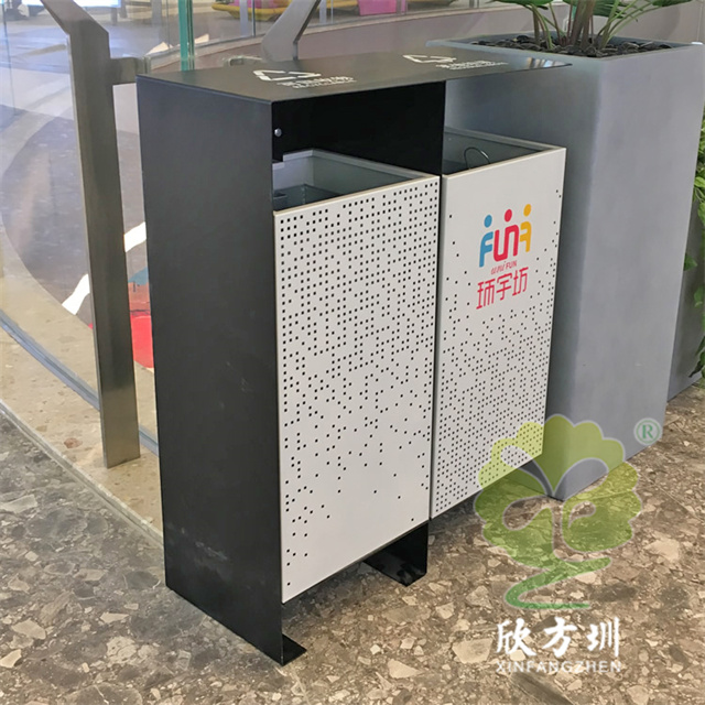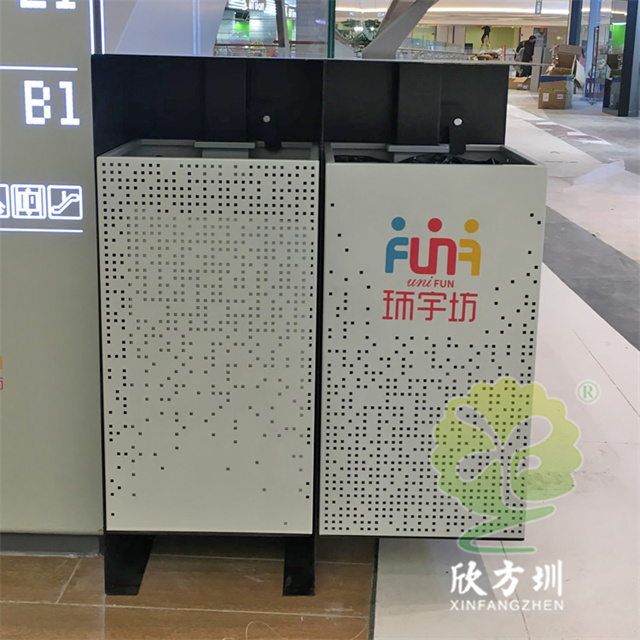 四川商場鏤空加厚不銹鋼分類垃圾桶可以選擇用鍍鋅板、冷軋鋼板或者不銹鋼板制造,這款垃圾桶框架比較厚實能夠防止割到手,表面噴涂噴塑俗稱噴粉,外部框架噴塑黑色箱體噴塑淺灰色,箱體圓點鏤空,這款垃圾桶是一家商場定制了兩款,一款用于商場室內一款用于戶外的廣場,桶身正反面絲印的企業(yè)的分類標識。