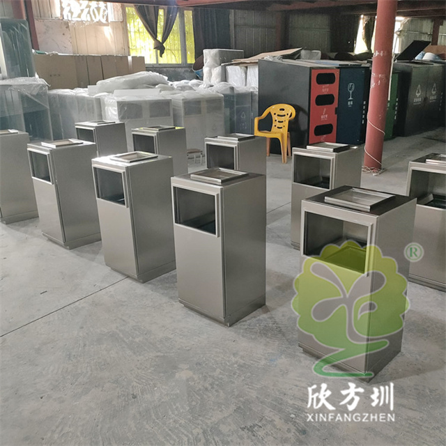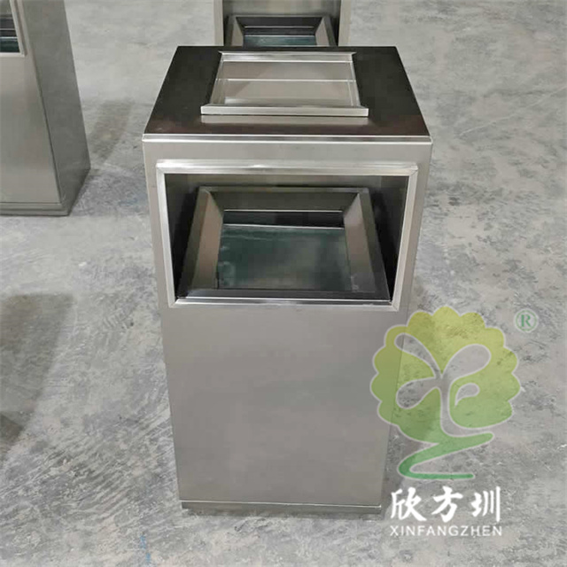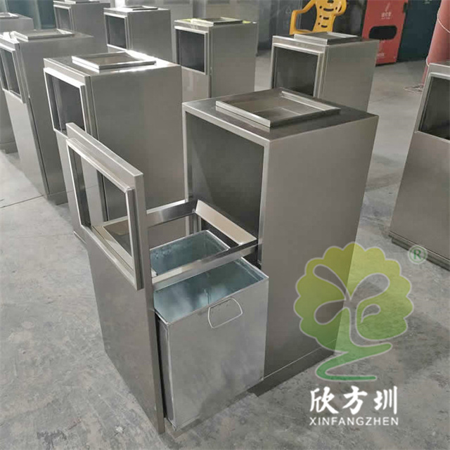 防指紋封油抽拉組合式不銹鋼分類垃圾桶可以使用201或304不銹鋼板制造,方形滑軌抽拉式組合式設(shè)計(jì),表面做了無(wú)指紋封油處理,投口方形折邊有效防止割手,頂部位置帶煙灰盅,不需要也可以不要煙灰盅,正面可以絲印分類標(biāo)識(shí)以及企業(yè)logo。