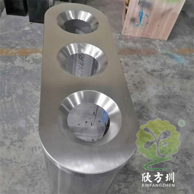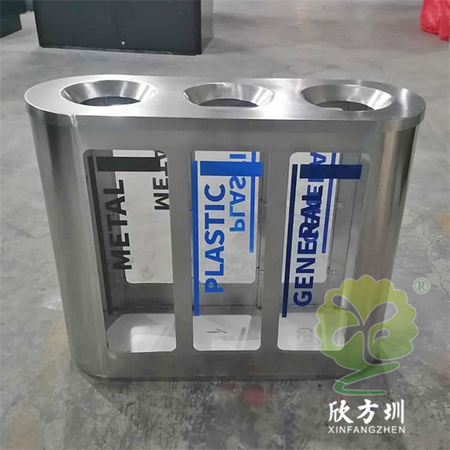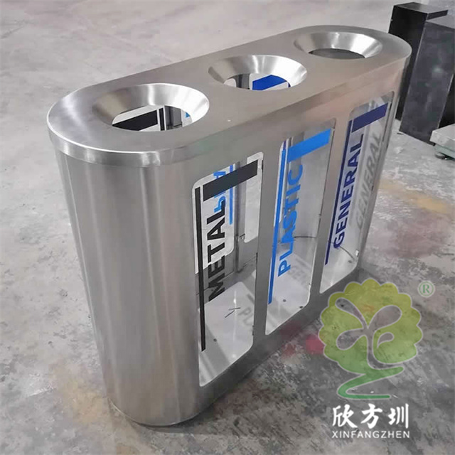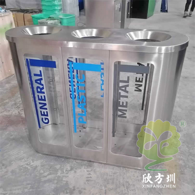 室內(nèi)地鐵站商用透明不銹鋼分類垃圾桶可以選用201或者304不銹鋼板制作,立式橢圓形連體三分類設(shè)計(jì),透明查探區(qū)域可以采用高清的亞克力板或者鋼化玻璃制造,透明板可以絲印中英文文字或者做貼紙,投口圓錐形平滑投遞廢物不易傷手,表面可以噴粉和電鍍支持定制。