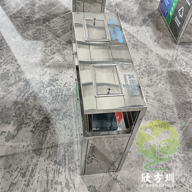 戶外城市街道鏡面不銹鋼分類垃圾桶采用了201不銹鋼板1.0毫米厚制作,也可以使用304不銹鋼板,正面亞克力板制作,不銹鋼表面鏡面處理,側(cè)面可以使用三角鑰匙開門取出內(nèi)筒,底部上方帶兩個(gè)把手打開兩個(gè)煙灰盅方便滅煙,亞克力和上方絲網(wǎng)印刷國(guó)標(biāo)分類標(biāo)識(shí),支持定制電鍍或者噴粉工藝處理。