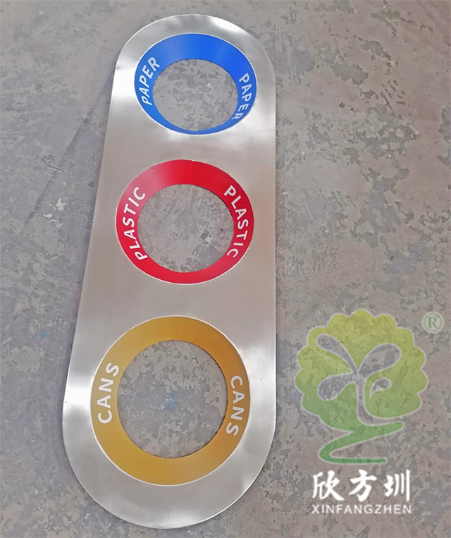 室內(nèi)商用直投口三分類不銹鋼垃圾桶采用了201不銹鋼1.0mm厚度做的外筒,桶身表面貼三色英文噴繪貼紙,表面可以做電鍍、拉絲防指紋處理、噴塑或者金屬本色等工藝,果皮箱三分類投口坡面設計,支持定制材料顏色尺寸,這款垃圾桶可以提升公共環(huán)境的整體美觀度,可以免費油墨絲網(wǎng)印刷國標中英文分類標識及l(fā)ogo。