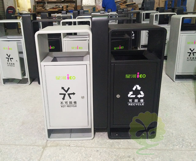 廣場(chǎng)鋼板烤漆分類垃圾桶采用優(yōu)質(zhì)冷軋鋼材料經(jīng)激光切割剪鈑下料、折彎、沖壓、焊接、打磨、等工藝:表面經(jīng)過(guò)除油、噴砂防銹處理后,再進(jìn)行酸洗磷化處理;表面清理干燥后整體進(jìn)行靜電噴涂或烤漆處理,靜電噴涂是經(jīng)過(guò)流水線高溫固化爐固化后再出爐冷卻,加工后的塑粉附著力強(qiáng),不易剝落,這樣戶外防銹效果才會(huì)好。