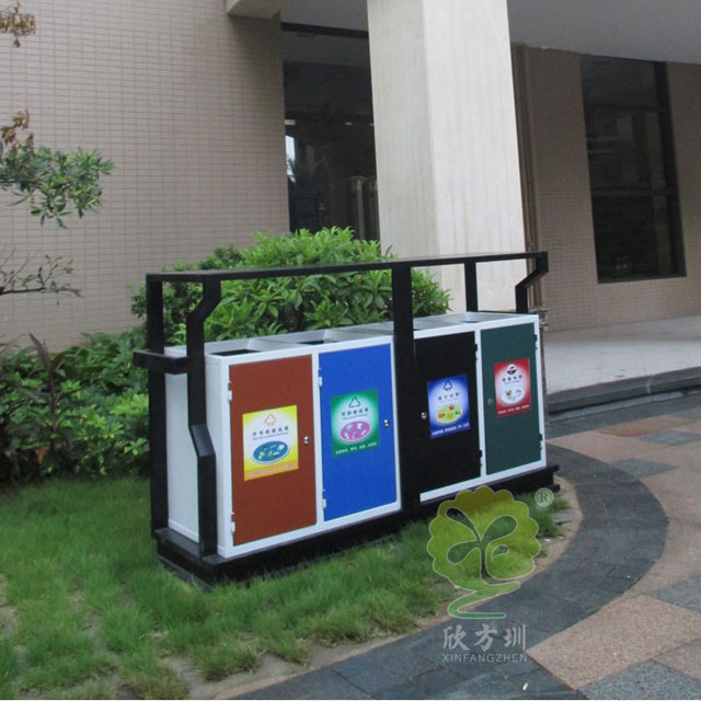 物業(yè)小區(qū)鋼板四分類垃圾箱采用優(yōu)質(zhì)冷軋鋼材料經(jīng)激光切割剪鈑下料、折彎、沖壓、焊接、打磨、等工藝:表面經(jīng)過除油、噴砂防銹處理后,再進(jìn)行酸洗磷化處理;表面清理干燥后整體進(jìn)行靜電噴涂或烤漆處理,靜電噴涂是經(jīng)過流水線高溫固化爐固化后再出爐冷卻,加工后的塑粉附著力強(qiáng),不易剝落,這樣戶外防銹效果才會(huì)好。